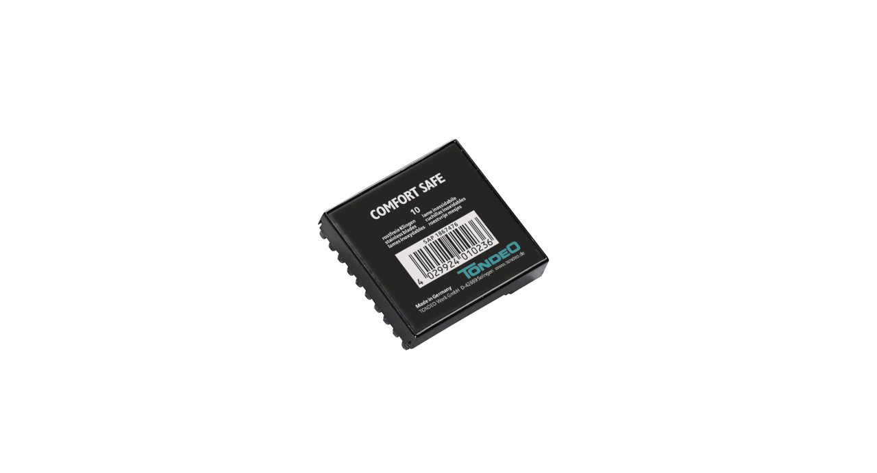 Notre lames de rasoir COFFRE-FORT TONDEO CONFORT offre changement de lame facile et sûr grâce au système de lame spécial. Le COMFORT SAFE dispose également d'un côté de sécurité dentelé et d'un côté pro droit. Nos lames de rasoir sont dotées d'un joint en nitrure de chrome de haute qualité et d'un revêtement spécial résistant à l'exposition aux produits chimiques. Cela leur donne propriétés de glisse exceptionnelles. 10 lames en acier inoxydable incluses. Les lames de rasoir conviennent à notre rasoir COMFORT CUT.